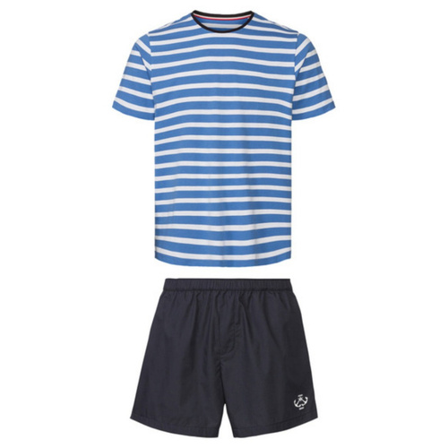 ست تیشرت آستین کوتاه و شلوارک مردانه لیورجی مدل 454404 آبی راه راه